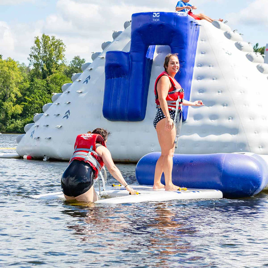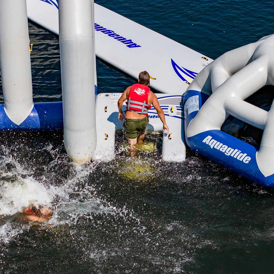 Featuring an expanded multi-step vertical architecture, the Aquaglide Swimstairs XL is the definitive mechanical solution for deep-water boarding on large-scale inflatable parks. This “Extra Large” ladder is engineered with industrial-grade Duratex™ PVC, providing superior structural integrity and constant stability for heavy-duty guest use. The hardware architecture focuses on providing a secure physical bridge for multiple swimmers simultaneously, utilizing heat-welded seams to ensure zero air-leakage in high-salinity coastal or chlorinated resort environments.
